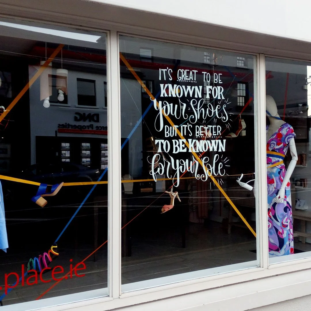 I worked for Place Evolution as an in-house photographer, merchandiser and website manager from 2016 - 2019. While there I had the pleasure of creating bright and bold window art for events, holidays and promotions. These window displays brightened up the street and put a smile on the faces of passers by.